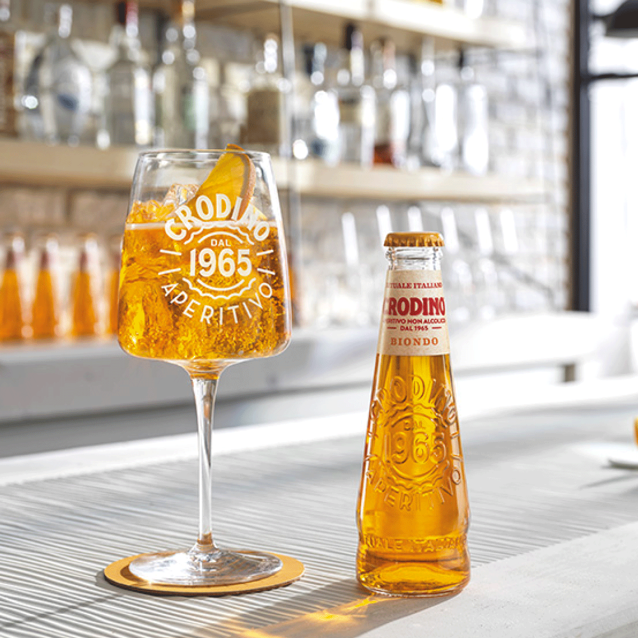 La alternativa sin alcohol al Aperol. Crodino mantiene el espíritu del aperitivo italiano: fresco, herbal y con ese amargor elegante que abre el apetito. Todo el ritual, sin alcohol.